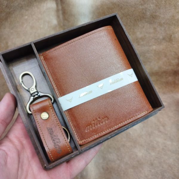 ست کیف جیبی و جا سوئیچی چرم ساده